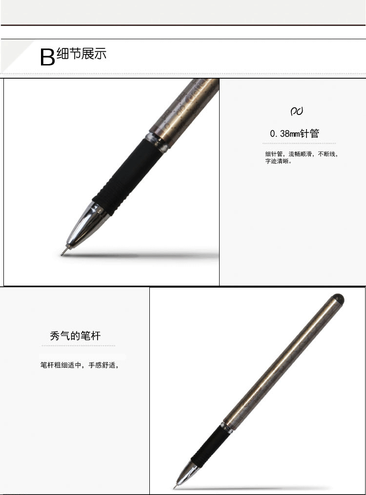 商品名称:得力(deli) S43 0.38mm全针管黑色优雅十字纹细杆财务中性笔