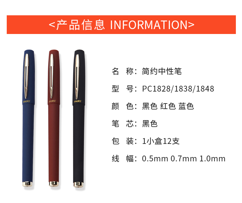 商品名称:宝克(BAOKE) PC1848红 大容量中性笔 磨砂笔杆 1.0mm