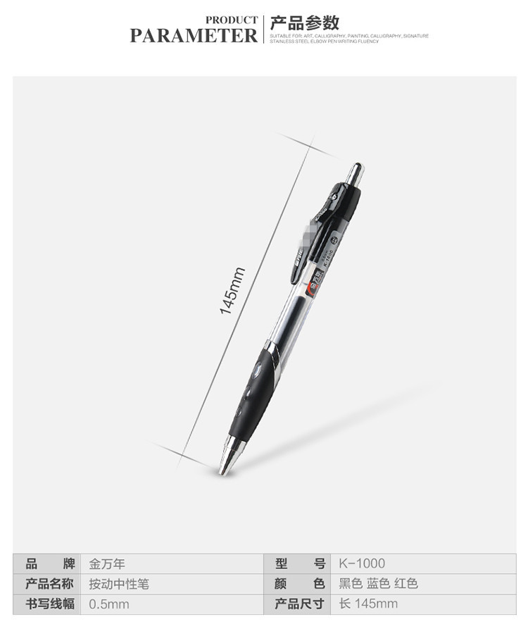 商品名称:金万年(Genvana) K-1000 中性笔 0.5 黑