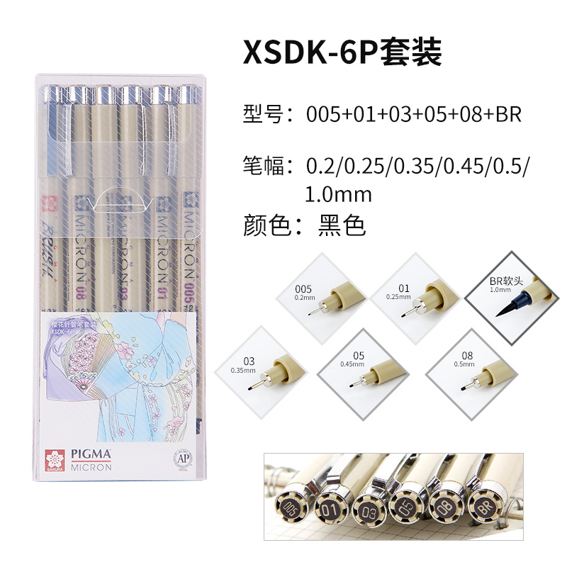 樱花(SAKURA) XSDK-6P 针管笔套装勾线笔漫画描边笔办公设计学生手绘笔绘图笔 套装