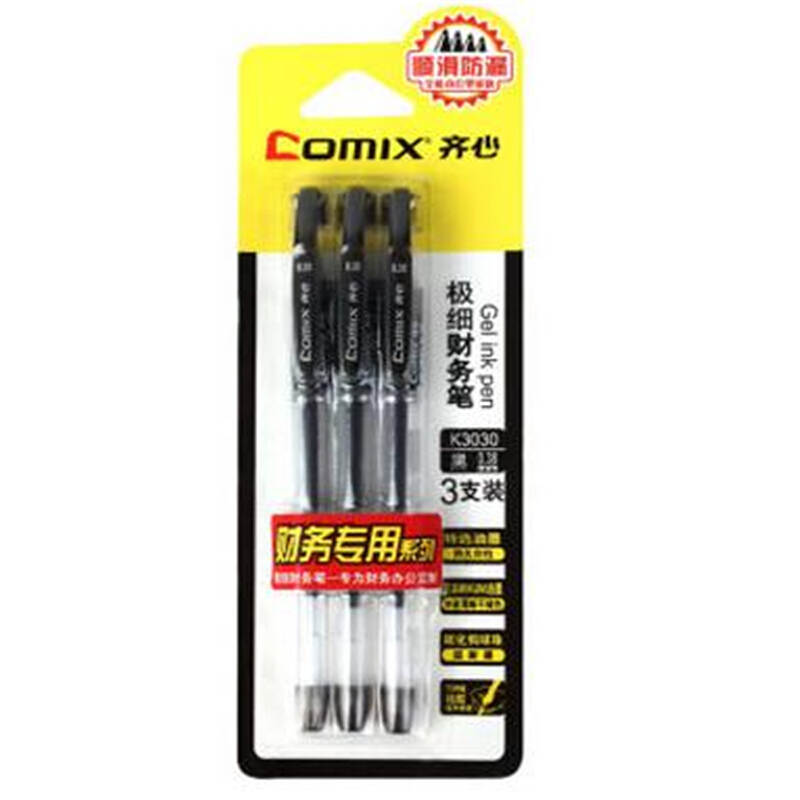 齐心(COMIX) K3030 极细财务笔0.38mm 3支/卡 黑