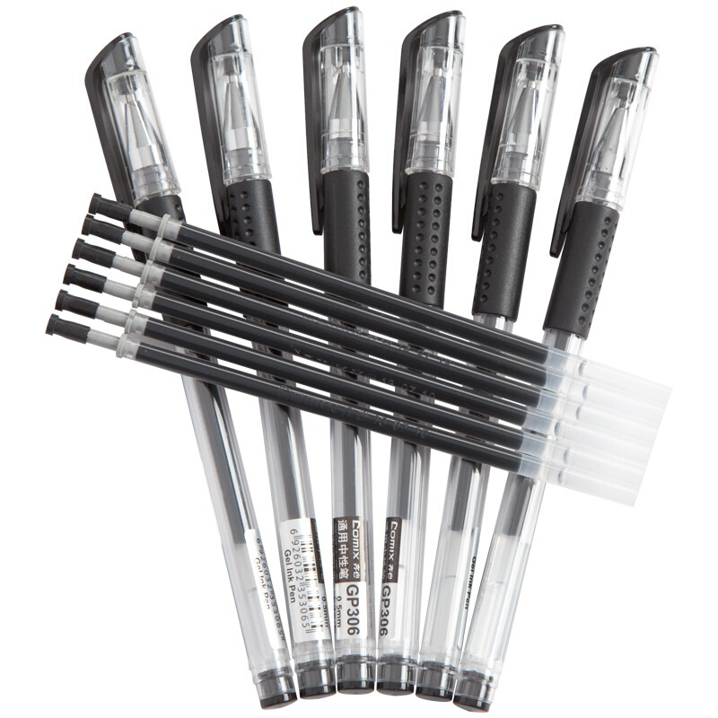 齐心(COMIX) K3066 通用中性笔 0.5mm 6支装(6支+6芯/板) 黑