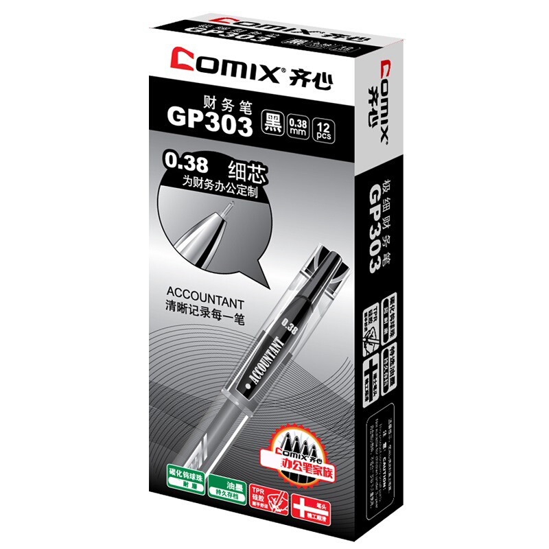 商品名称:齐心(COMIX) GP303 极细财务专用中性笔 0.38mm针管笔 黑色
