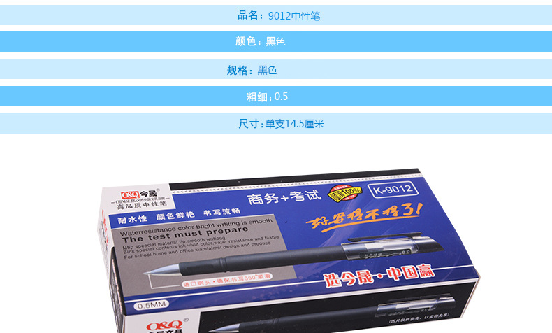 商品名称:今晨 K-9012 中性笔 黑色0.5mm