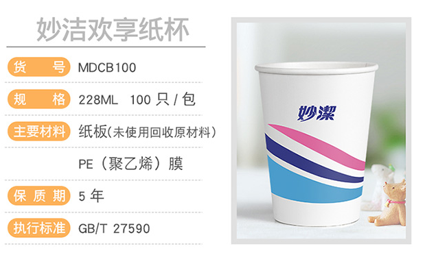 商品名称:妙洁纸杯100/妙洁 一次性杯子塑料杯 加厚240ml中号100只装