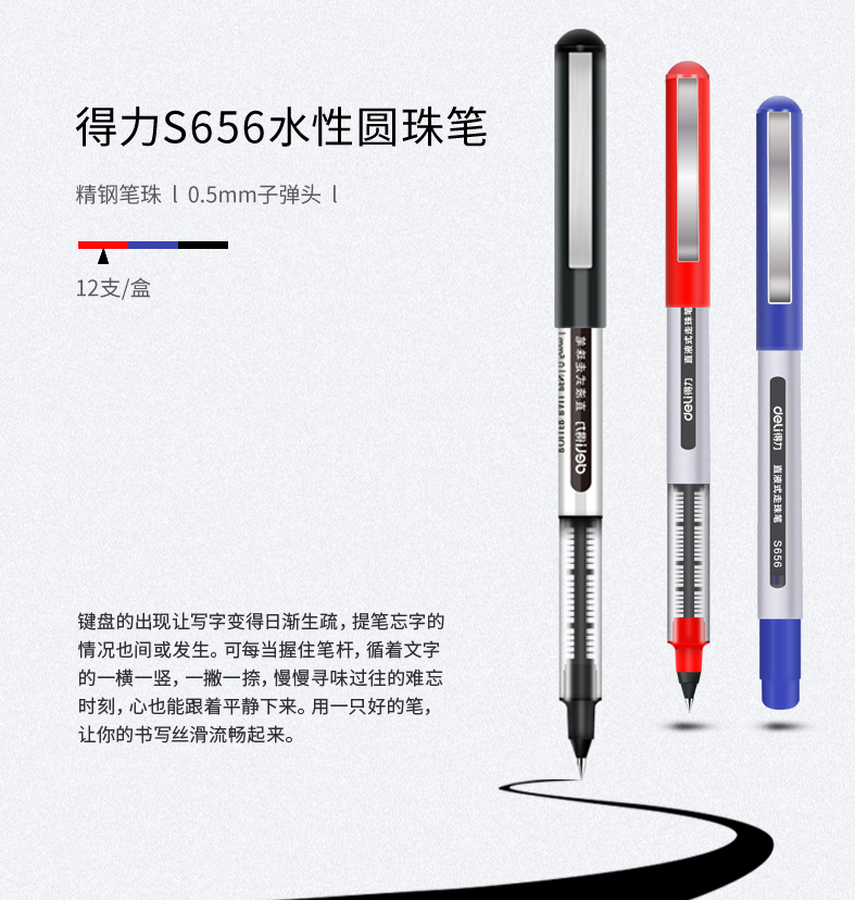 商品名称:得力(deli) 直液式走珠笔签字笔 黑色12支