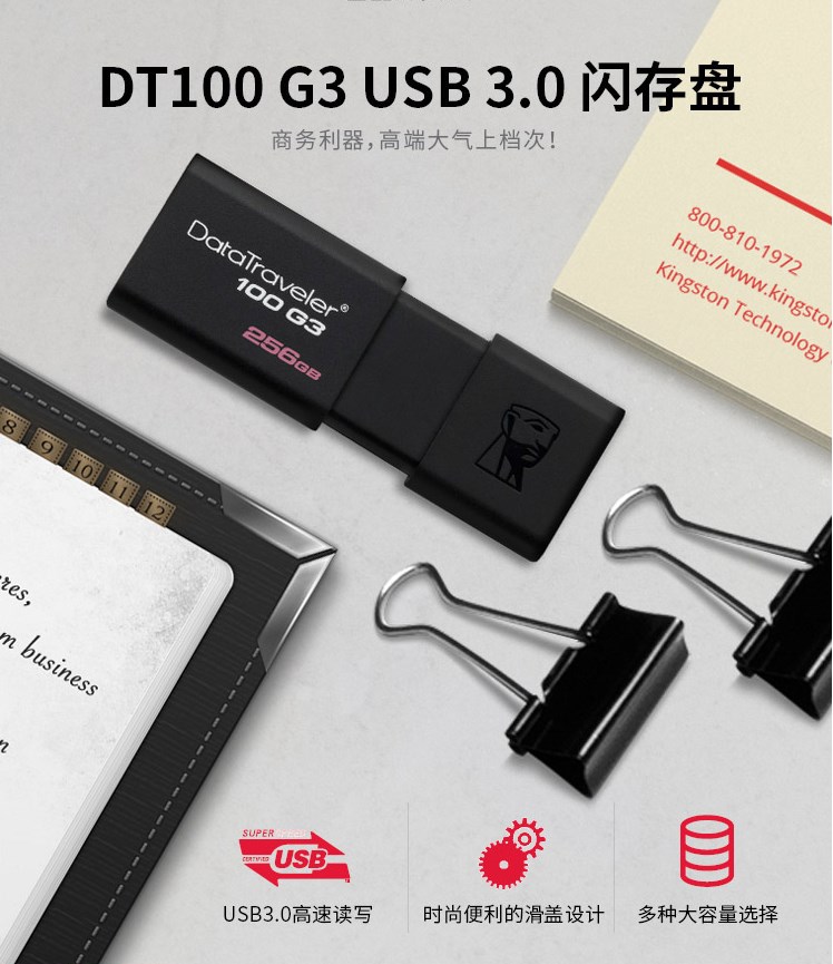 U盘 256G/金士顿(Kingston)256GB USB3.0 U盘 DT100G3 黑色 滑盖设计 时尚便利