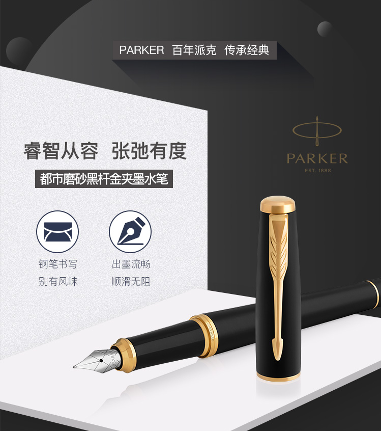 商品名称:派克钢笔 都市磨砂 派克(PARKER)钢笔/签字笔新款都市系列 磨砂黑色金夹商务办公礼品