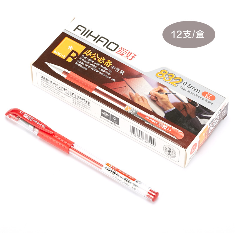 爱好(AIHAO) 832 欧标水笔商务签字笔学生0.5mm 红