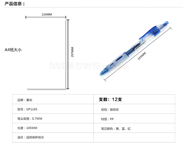 商品名称:晨光(M&G) GP1165 按动中性笔 黑色0.7mm