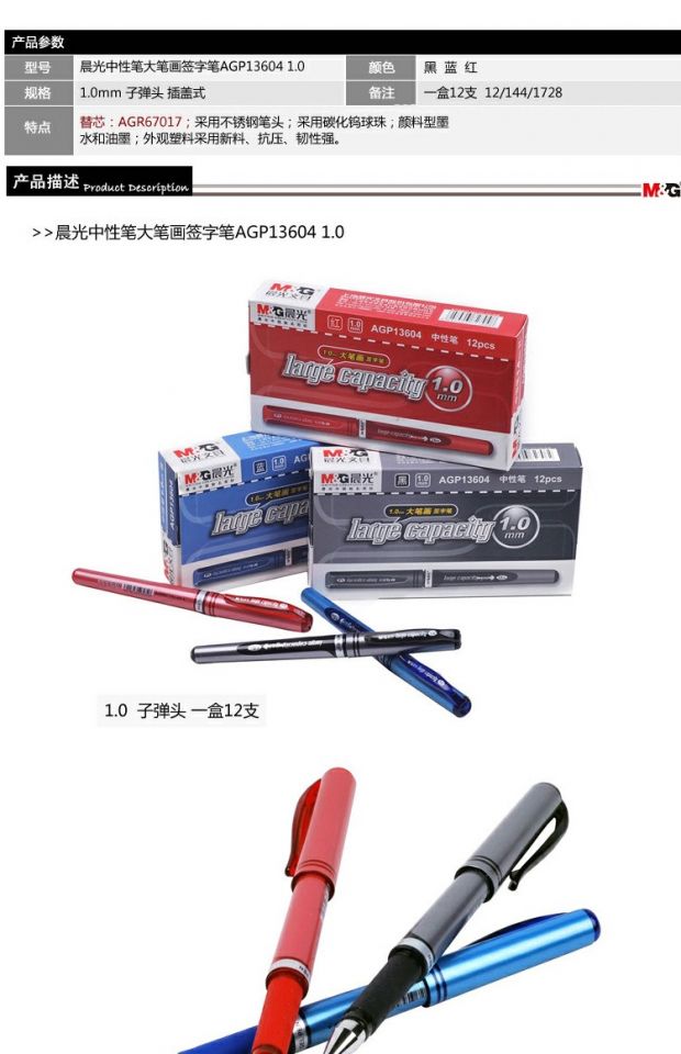 商品名称:晨光(M&G) AGP13604 大笔画中性笔1.0mm 蓝
