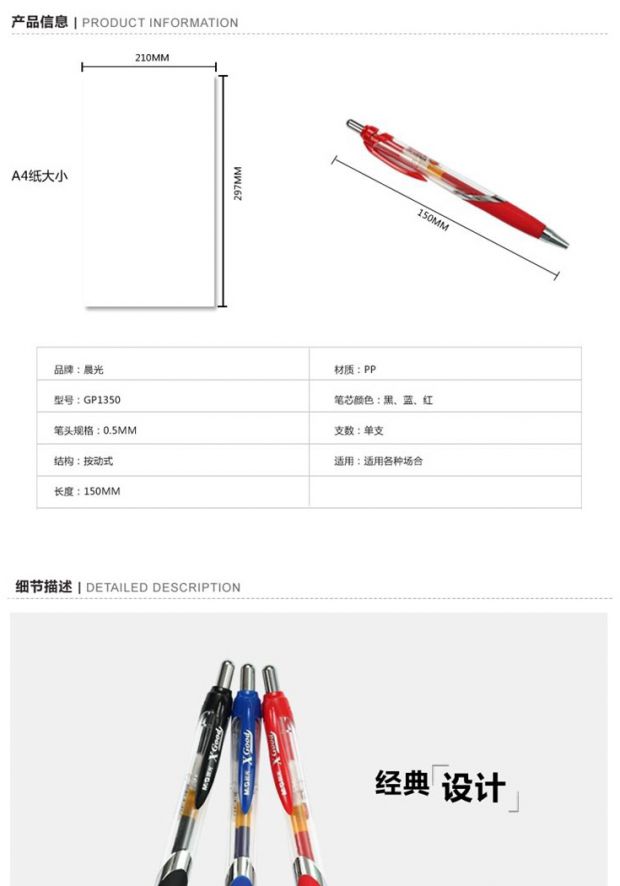 商品名称:晨光(M&G) GP1350 中性笔 0.5mm 蓝