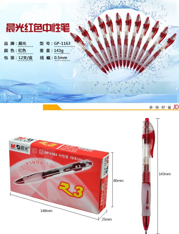 商品名称:晨光(M&G) GP1163 中性笔0.5mm 蓝