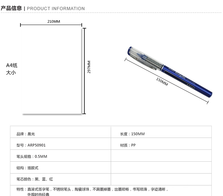 商品名称:晨光(M&G) ARP50901 签字笔 全针管直液式水性笔0.5mm 黑