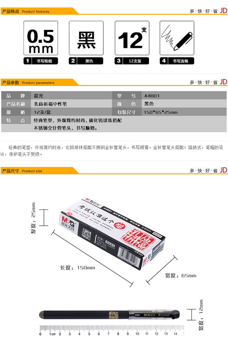商品名称:晨光(M&G) AGPA4801 孔庙祈福中性笔碳素黑0.5mm中性笔