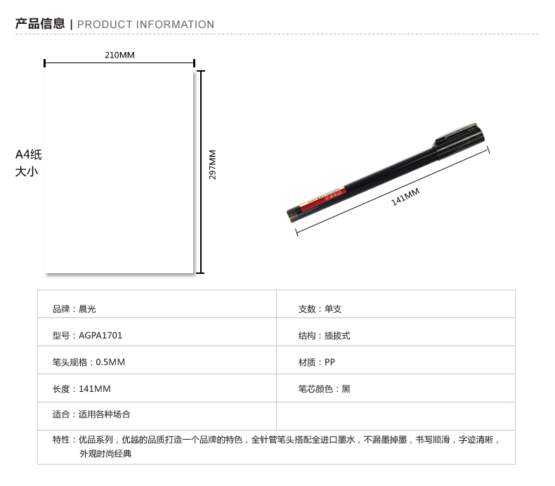 商品名称:晨光(M&G) AGPA1701 中性笔优品 0.5mm 黑