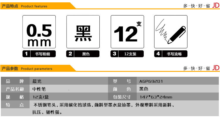 商品名称:晨光(M&G) AGP69201 中性笔 0.5mm 黑色