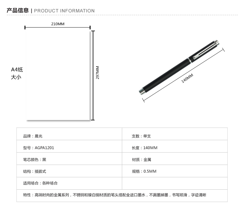 商品名称:晨光(M&G) AGPA1201 中性笔金属黑0.5mm