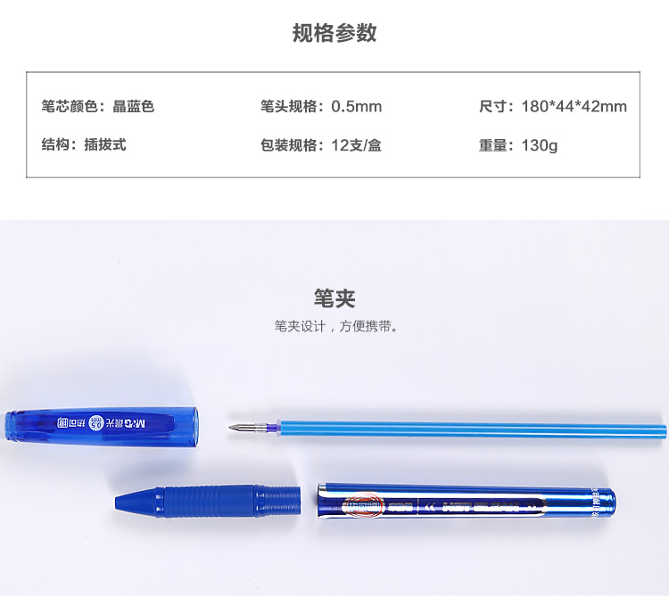 商品名称:晨光(M&G) AKP61108蓝 热可擦摩磨易擦子弹头中性笔 0.5mm