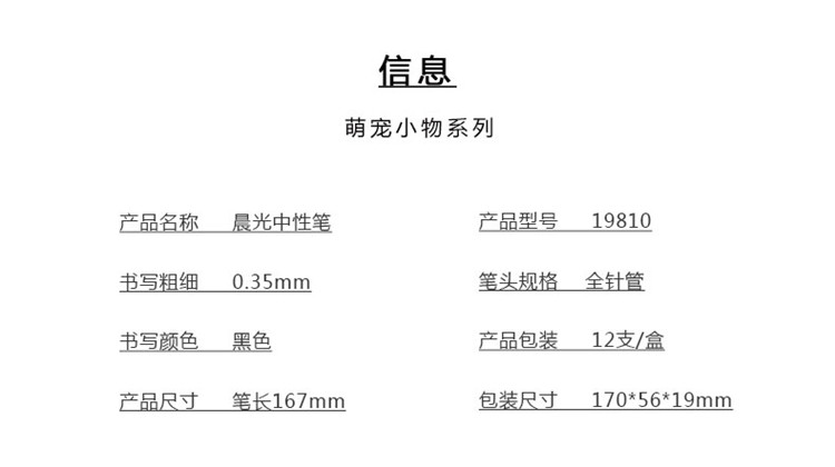 商品名称:晨光(M&G) AGP19810 萌宠小物 全针管中性笔 0.35mm 蓝
