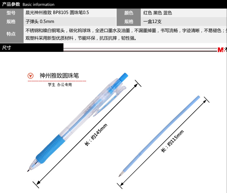 商品名称:晨光(M&G) BP-8105 圆珠笔 0.5mm 黑