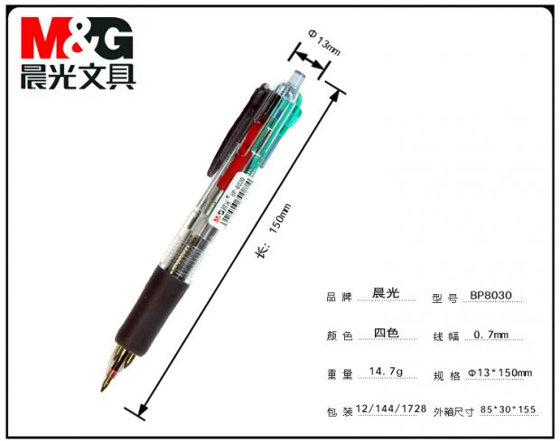 商品名称:晨光(M&G) BP8030 中央开关圆珠笔四色0.7mm
