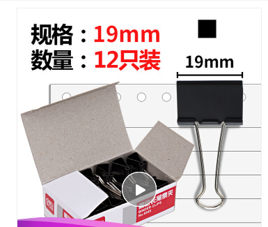 商品名称:得力(deli) 盒装黑色长尾夹 票夹 票据文件票夹 12只/盒 19mm 9545