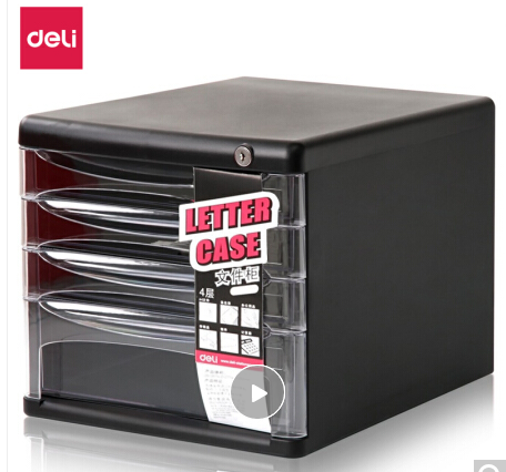 商品名称:得力(deli)四层带锁抽屉式桌面文件柜资料柜收纳柜 黑色9794