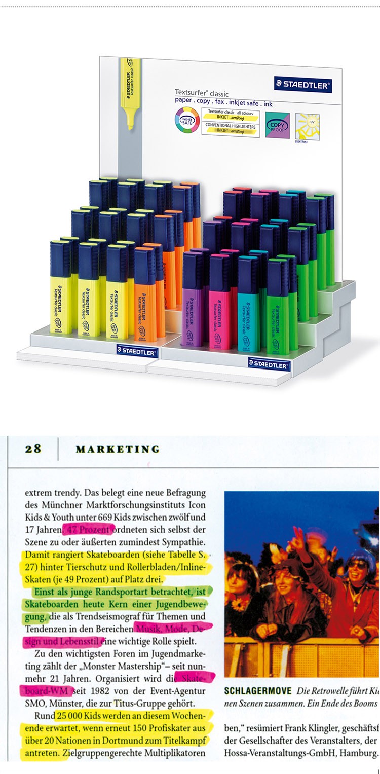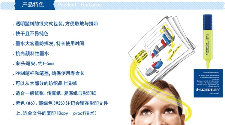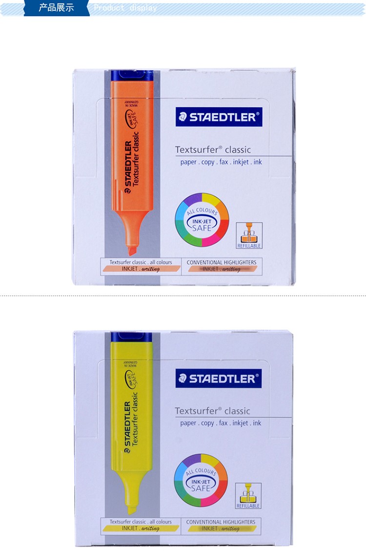 商品名称:施德楼(Staedtler) 364 8色 经典学习办公荧光笔 红