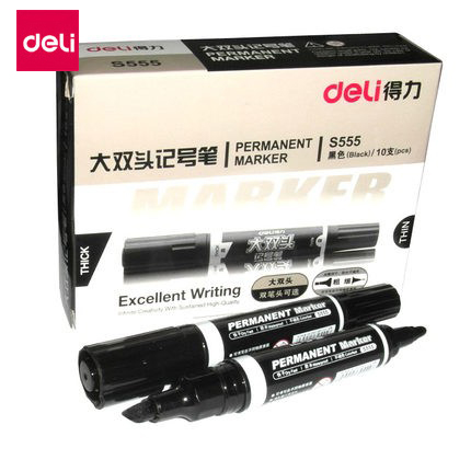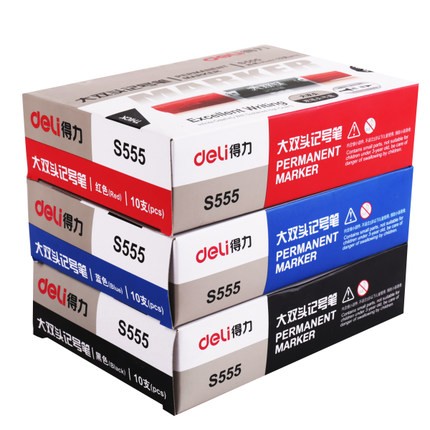 得力(deli) S555 双头防水物流记号笔 蓝色 10支/盒