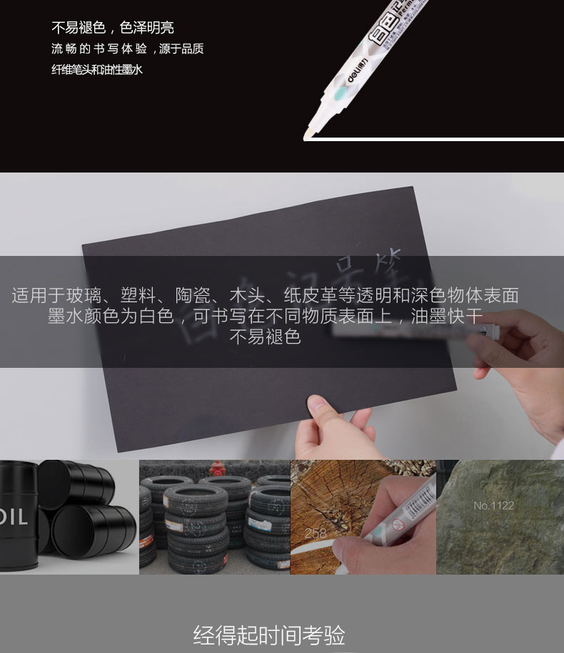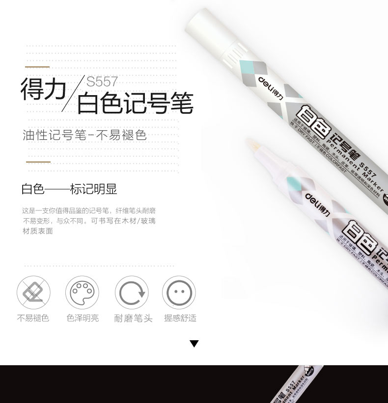 商品名称:得力(deli) S557 快感不褪色白色记号笔