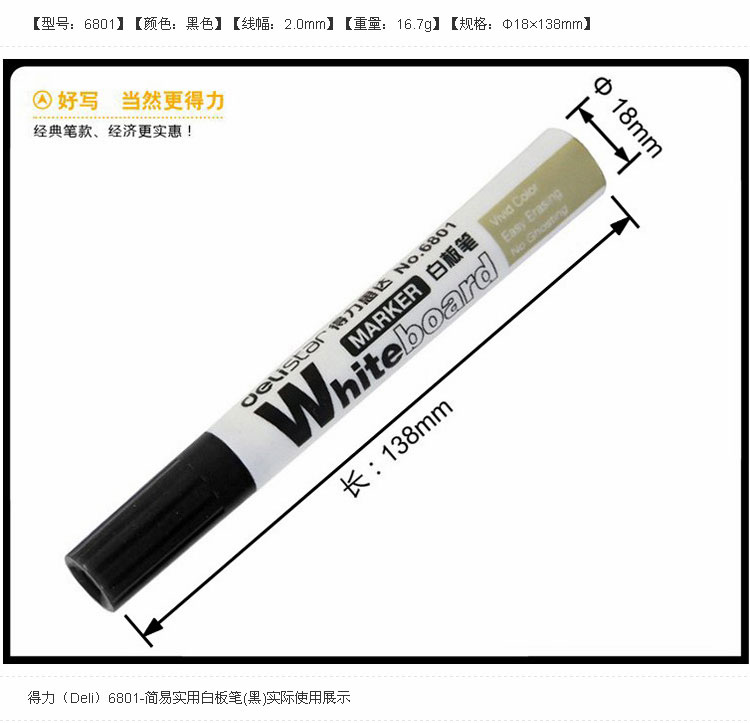商品名称:得力(deli) 6801 白板笔