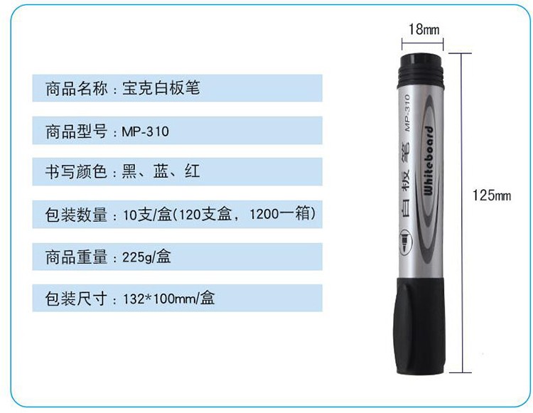 商品名称:宝克(BAOKE) MP310 单头可擦白板笔 红