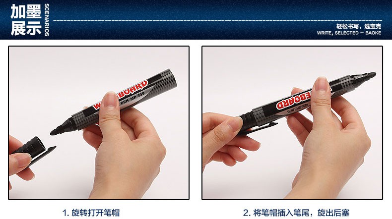 宝克(BAOKE) MP399A 可擦白板笔 可加墨水可擦白板笔 黑