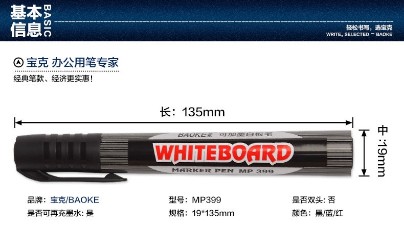 商品名称:宝克(BAOKE) MP399A 可擦白板笔 可加墨水可擦白板笔 黑