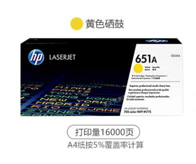 惠普(HP)CE340A 651A硒鼓适用M775dn/M775z/M775f 651A 651A黄色(CE342A)16000张