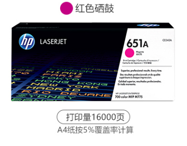 惠普(HP)CE340A 651A硒鼓适用M775dn/M775z/M775f 651A 651A品红(CE343A)16000张