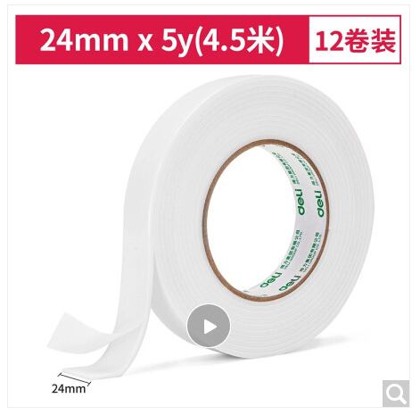 商品名称:得力(deli)强力高粘度EVA泡棉双面胶带 24mm*5y*2.5mm 12卷袋装 办公用品 白色30412