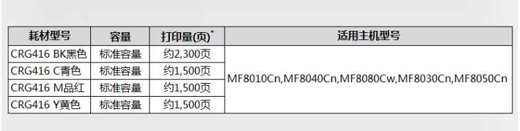 商品名称:佳能(Canon)硒鼓CRG416 BK黑色(适用MF8080Cw/MF8050Cn)