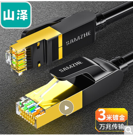 商品名称:山泽(SAMZHE)七类网线 Cat7类纯铜屏蔽8芯双绞线 工程级万兆网络连接线 电脑宽带家用成品跳线 黑3米CAT-703H