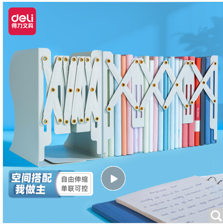 商品名称:得力(deli)22cm可伸缩书立 简易收纳单联可控 米白 78631