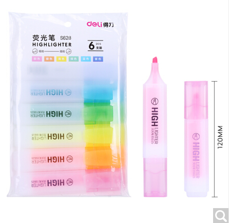 商品名称:得力(deli)彩色荧光笔 水性记号笔手账涂鸦笔 重点标记笔 6色/袋 S628