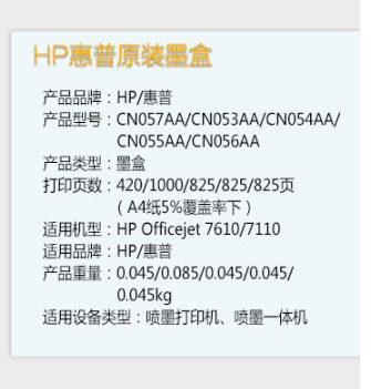 商品名称:惠普 原装 墨盒HP933XL 兰色墨盒