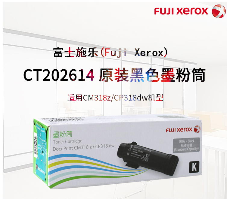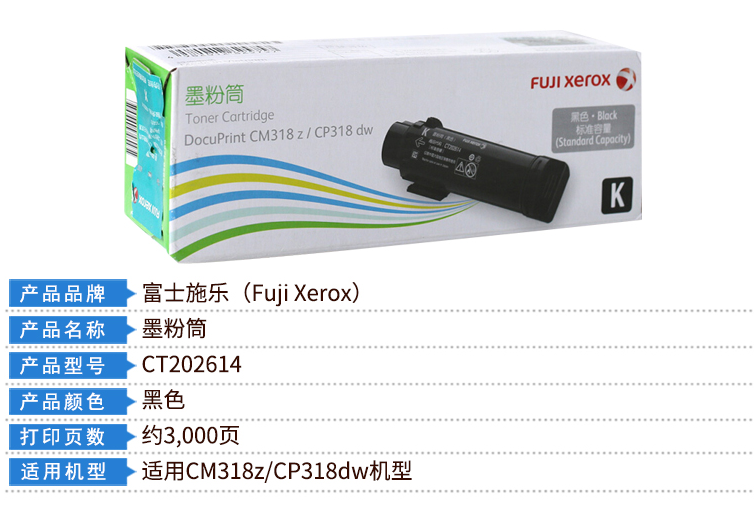商品名称:富士施乐(Fuji Xerox)CT202614 原装黑色墨粉筒 (适用CM318z/CP318dw机型) 约3000页