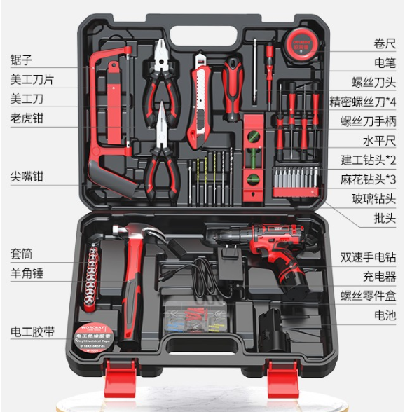 商品名称:德国 欧莱德充电式电钻电动螺丝刀螺丝批电转多功能家用工具箱木工维修组套便携手电钻锂电钻五金工具 12V万家福锂电套装+双电池