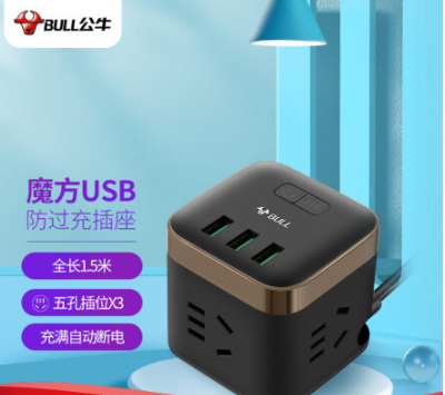 公牛(BULL) 魔方智能USB插座 插线板/插排/排插/接线板/拖线板 GN-U303U 白色魔方USB插座全长1.5米