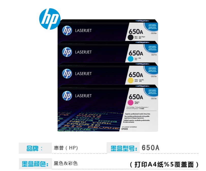 商品名称:惠普(HP)CE270A 650A 黑色硒鼓(适用CP5525 M750 系列)