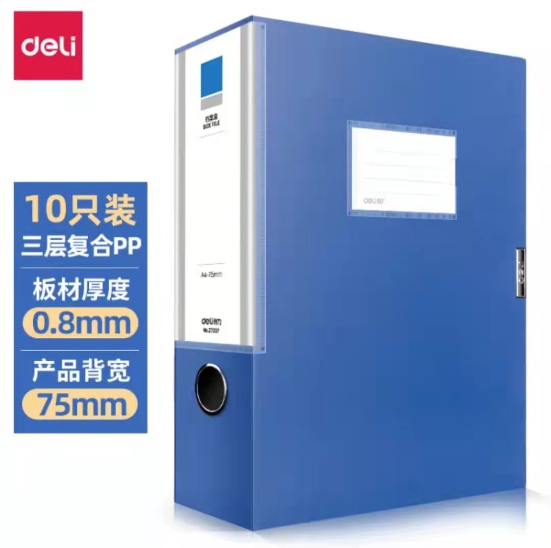 商品名称:得力(deli)10只75mmA4加厚PP粘扣文件盒档案盒资料盒凭证文件收纳盒财会用品27037蓝色