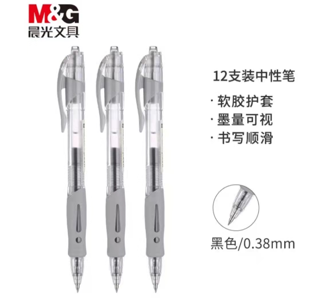 商品名称:晨光(M&G)文具0.38mm黑色办公中性笔 按动子弹头学生签字笔 简致系列简约水笔 12支/盒AGP02310