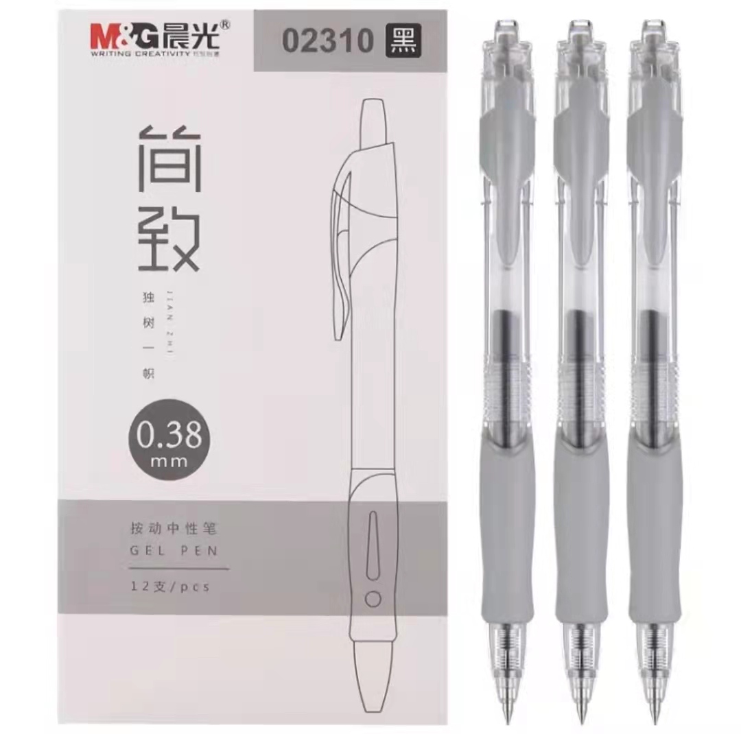 晨光(M&G)文具0.38mm黑色办公中性笔 按动子弹头学生签字笔 简致系列简约水笔 12支/盒AGP02310